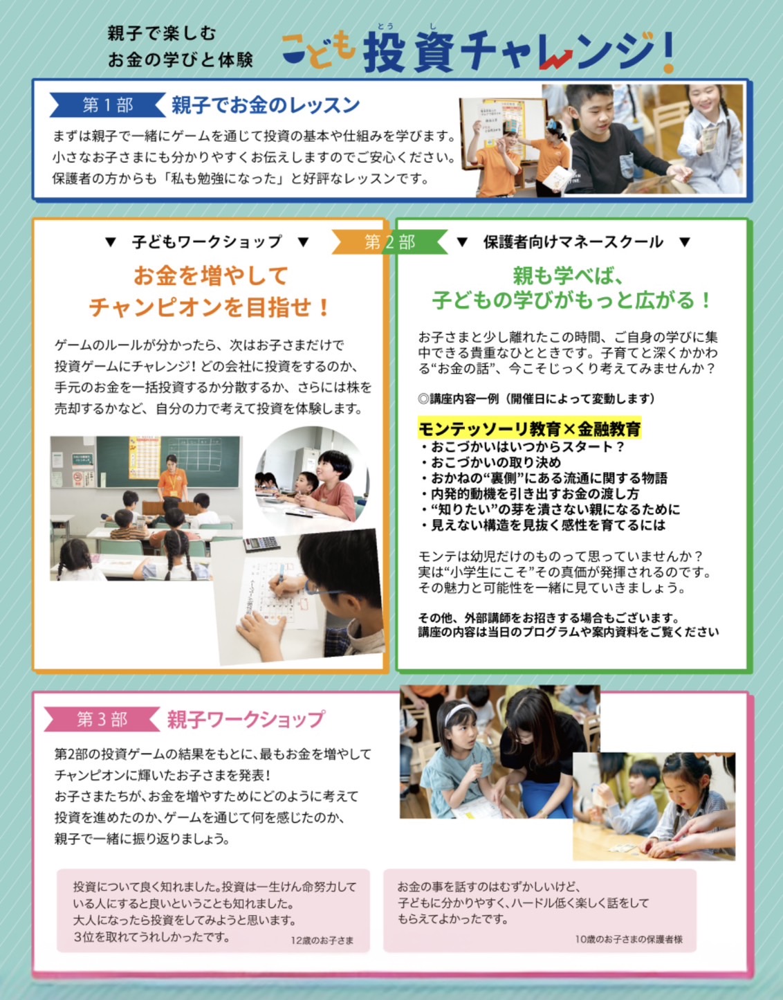 お金について学べるのは子どもだけではありません。親御さんにも短時間で効率よく学べる勉強会をご用意しています。